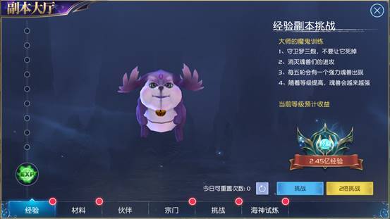 玩家在这个副本内守卫罗三炮,抵挡魂兽的进攻。获得大量的经验值。