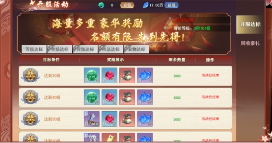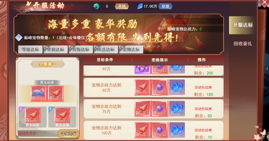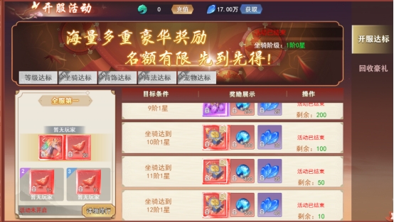 坐骑达标:坐骑达到一定的星级可获得丰富奖励,排行第一的玩家还可获得超炫坐骑及仙宠碎片。