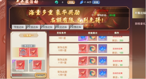 背饰达标:背饰达到一定星阶后可获得奖励,全服第一玩家获得超炫酷的背饰。