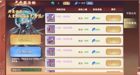 回收豪礼:在活动期间内掉落的装备与宠物都可回收获得丰富的灵石奖励。