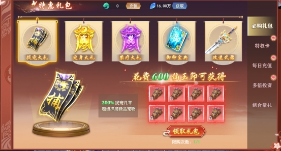 捉宠大礼:高级抓捕符,抓取仙宠的必要礼包。
