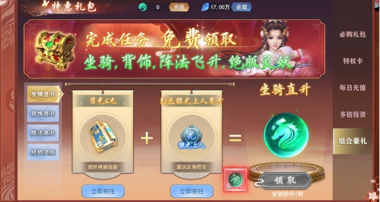 等级达到100级开放每日钜惠礼包,充值立返仙玉,还有丰厚奖励等你来拿!