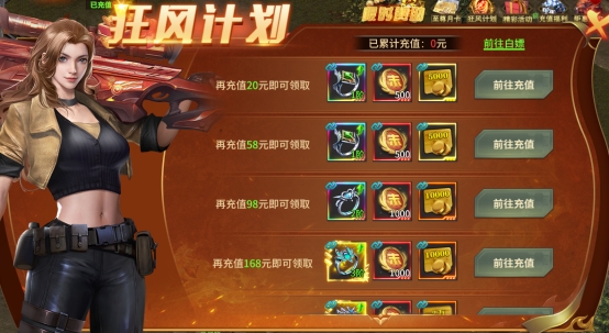 活动说明:玩家累计充值达到条件即可领取奖励(可使用充值卡),