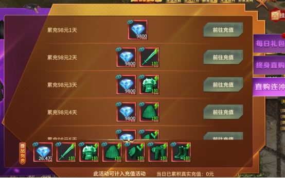 活动说明:真实充值累计98元即可领取奖励